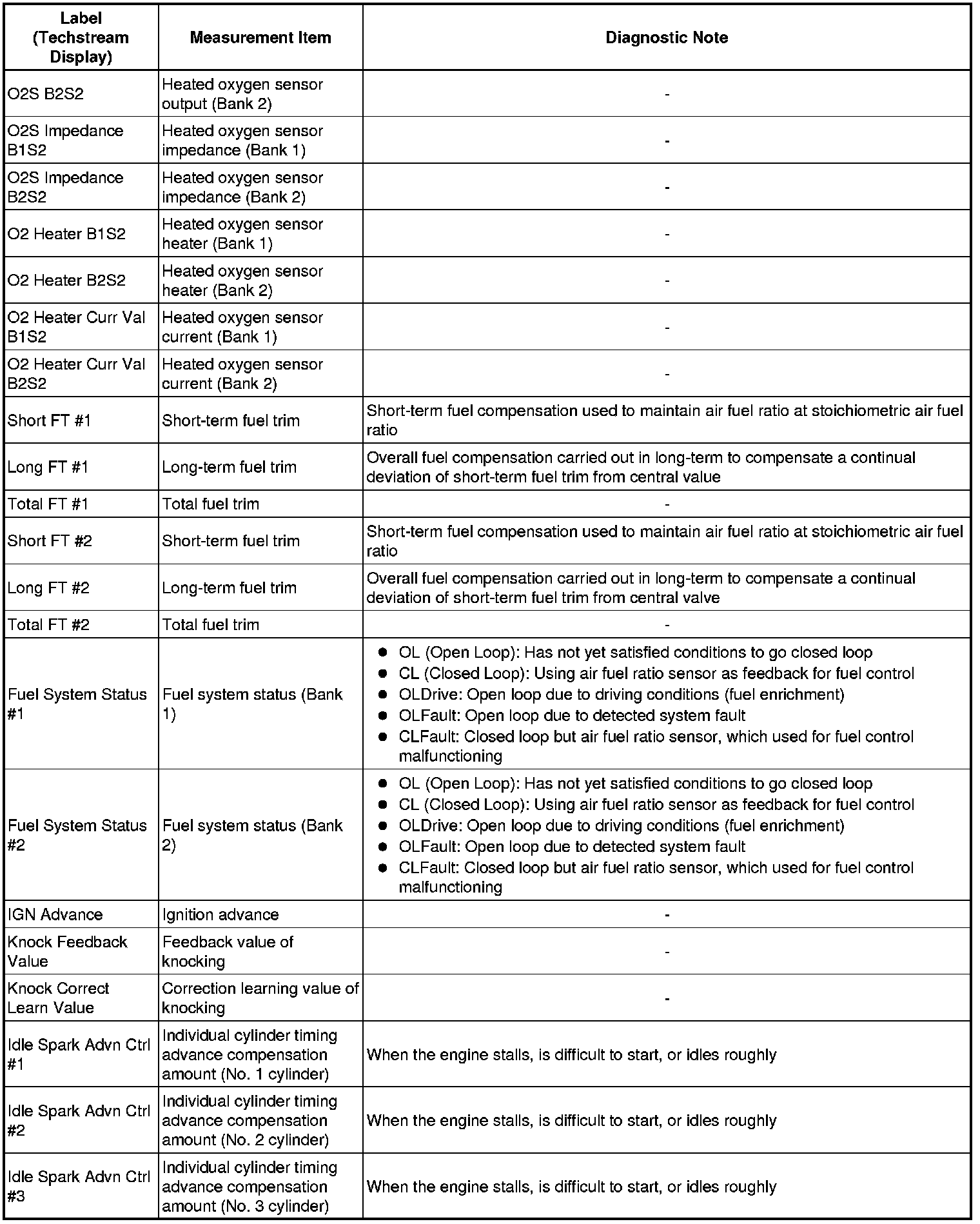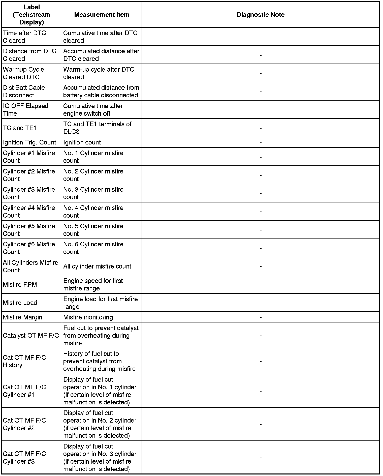 * The ECM records engine conditions in the form of freeze frame data every 0.5 seconds. Using the Techstream, 5 separate sets of freeze frame data, including the data values at the time when the DTC was set, can be checked.