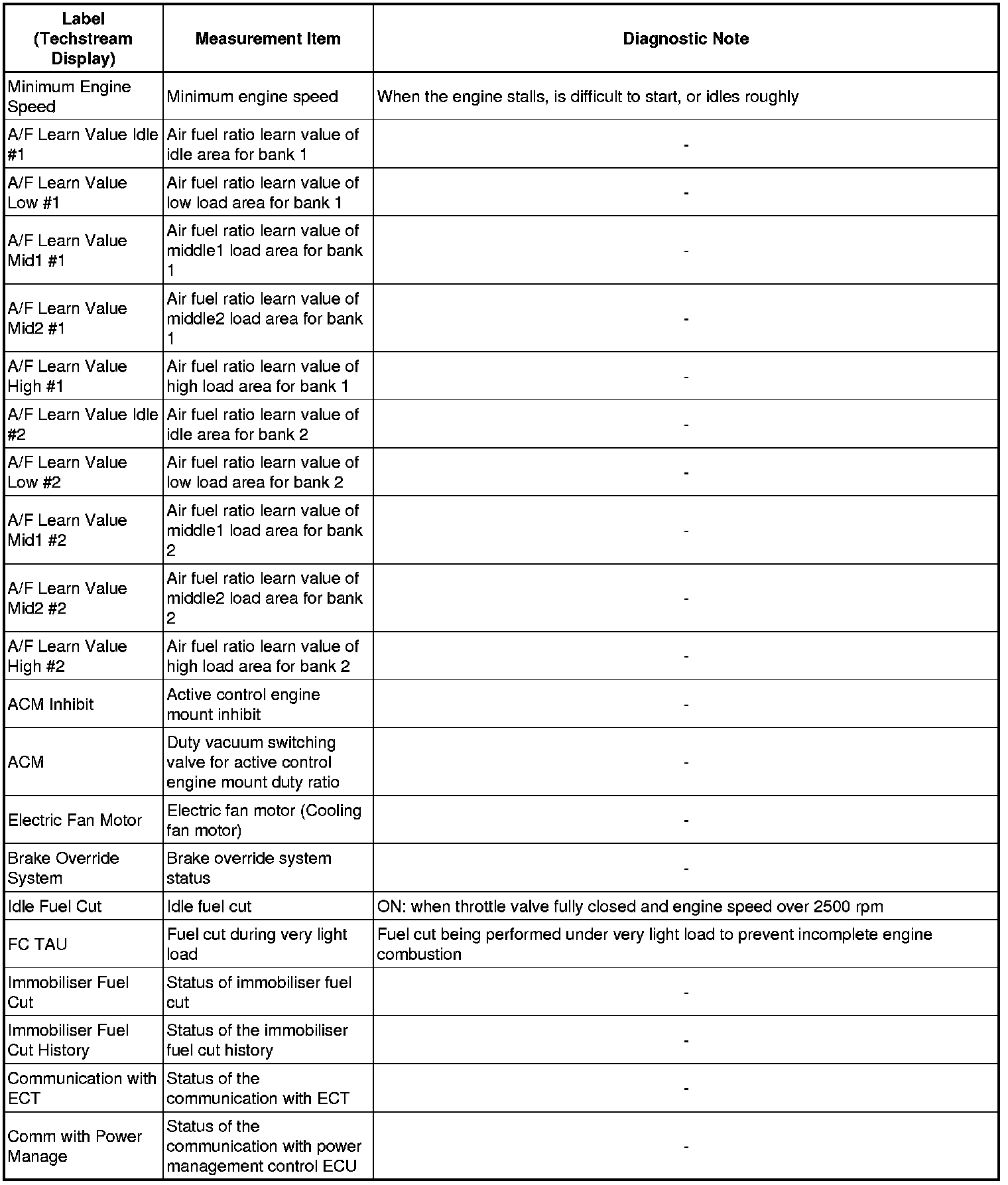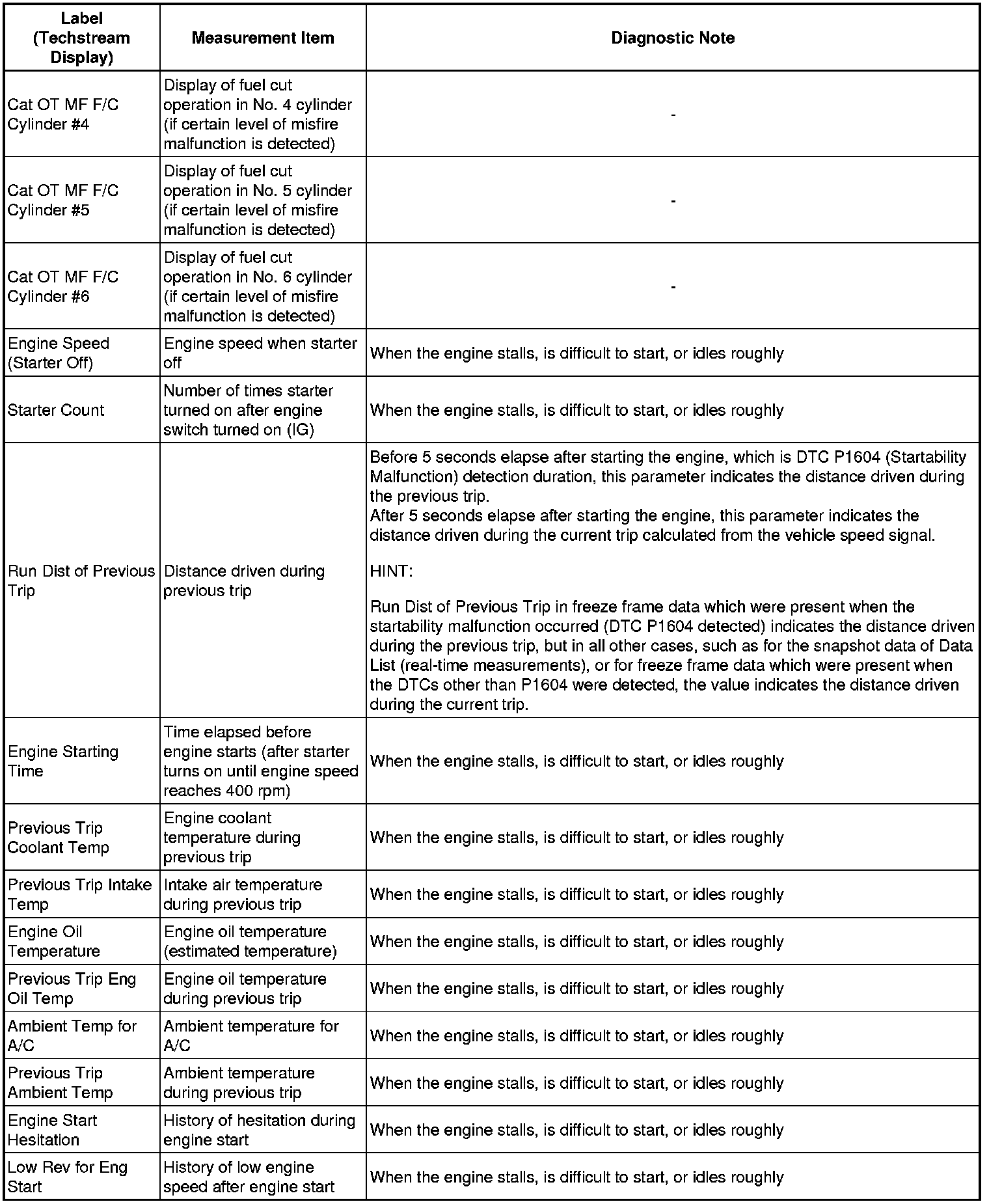 2GR-FE ENGINE CONTROL: SFI SYSTEM: FREEZE FRAME DATA