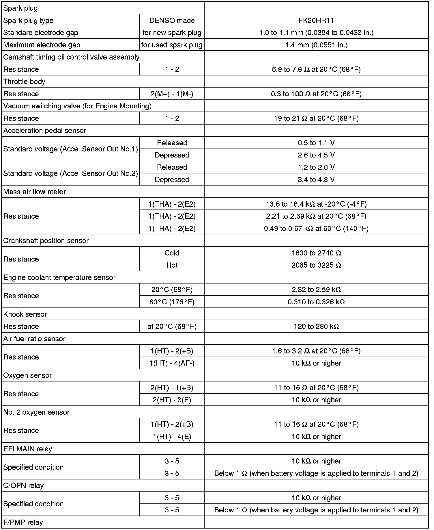 SPECIFICATIONS: 2GR-FE ENGINE CONTROL: SERVICE DATA