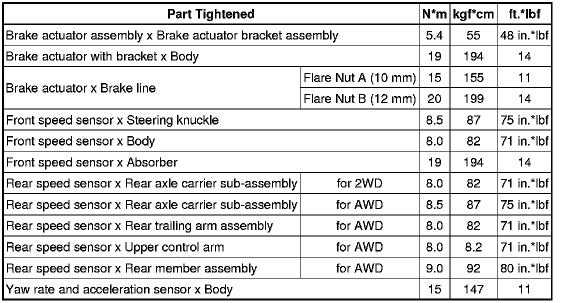 SPECIFICATIONS: BRAKE CONTROL / DYNAMIC CONTROL SYSTEMS: TORQUE SPECIFICATIONS