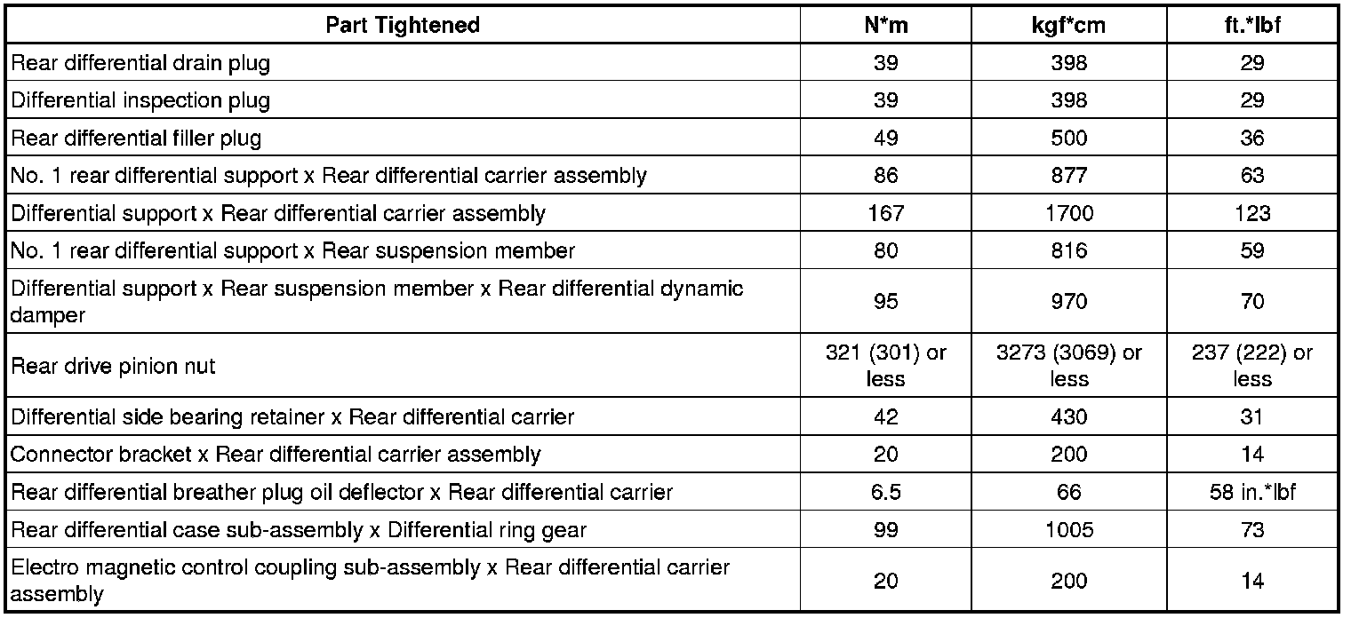 SPECIFICATIONS: AXLE AND DIFFERENTIAL: TORQUE SPECIFICATIONS