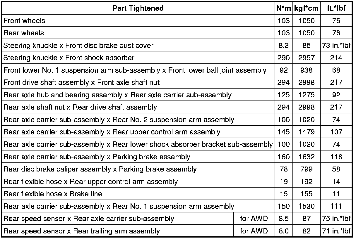 SPECIFICATIONS: AXLE AND DIFFERENTIAL: TORQUE SPECIFICATIONS