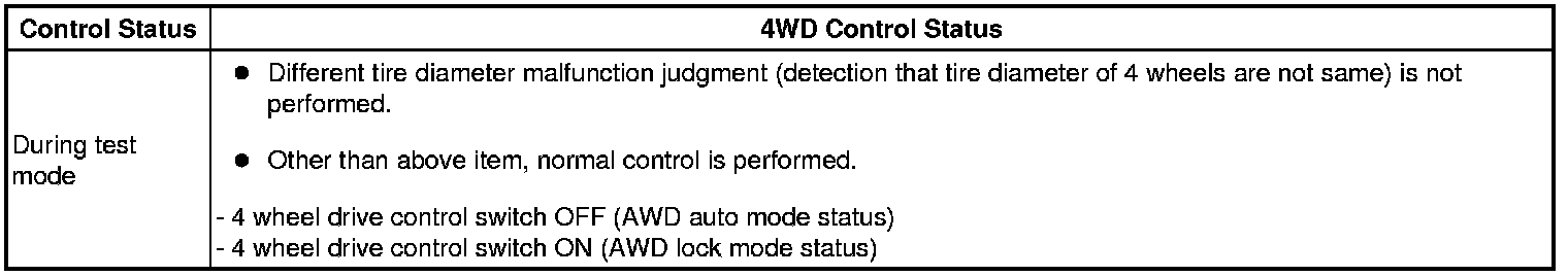 Test mode does not have a 4WD parameter. Test mode is activated because it will prohibit a different tire diameter judgment.