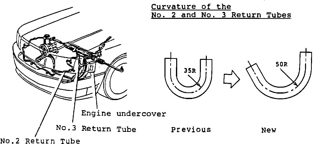 The curvature of the No. 2 and No. 3 power steering return tubes and the rear left hand engine cover have been modified.