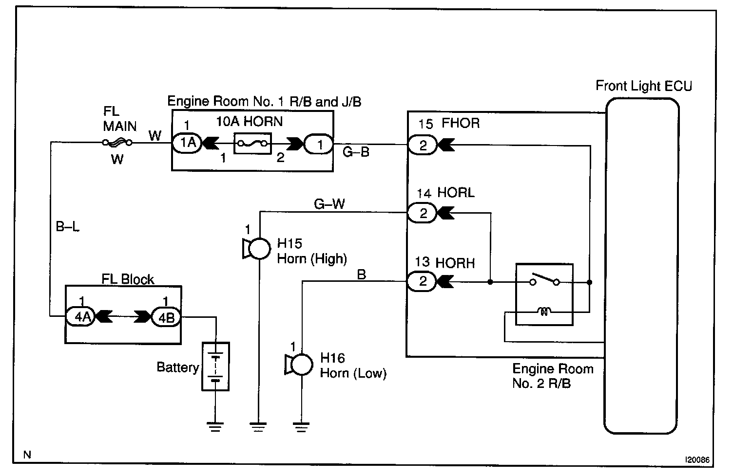 CIRCUIT DESCRIPTIONThe horn is connected to the front light ECU and activated by the front light ECU during warning of the theft deterrent system.