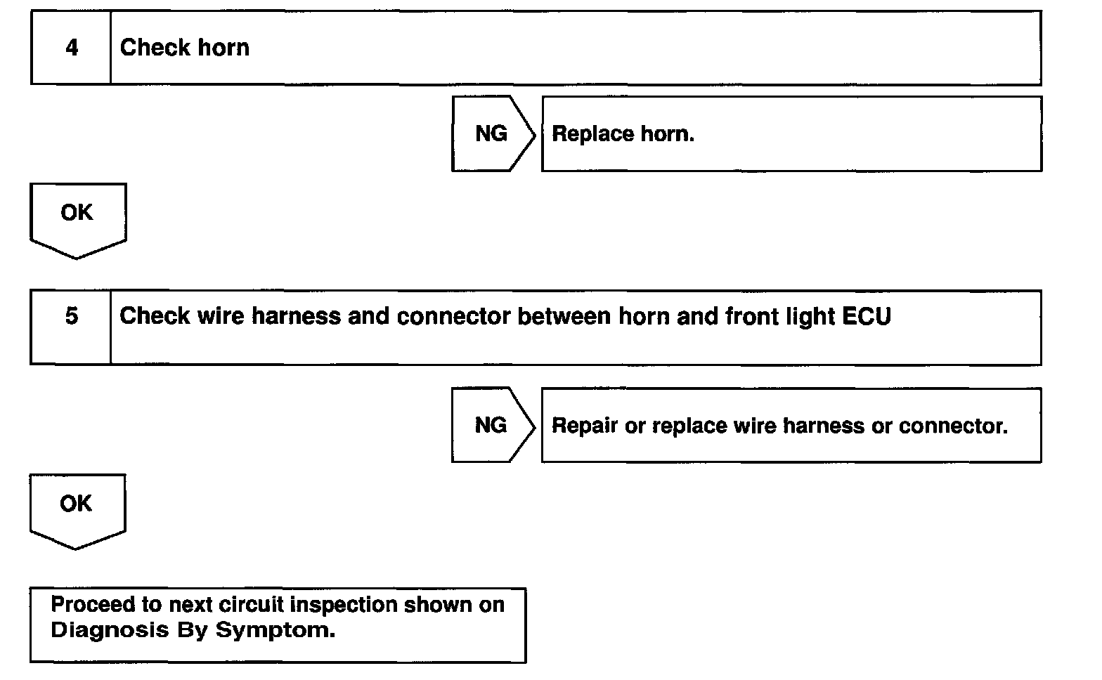 In this condition, if any of the following operations is done, in the ECU turn the horn relay off to stop, thus horns from blowing: