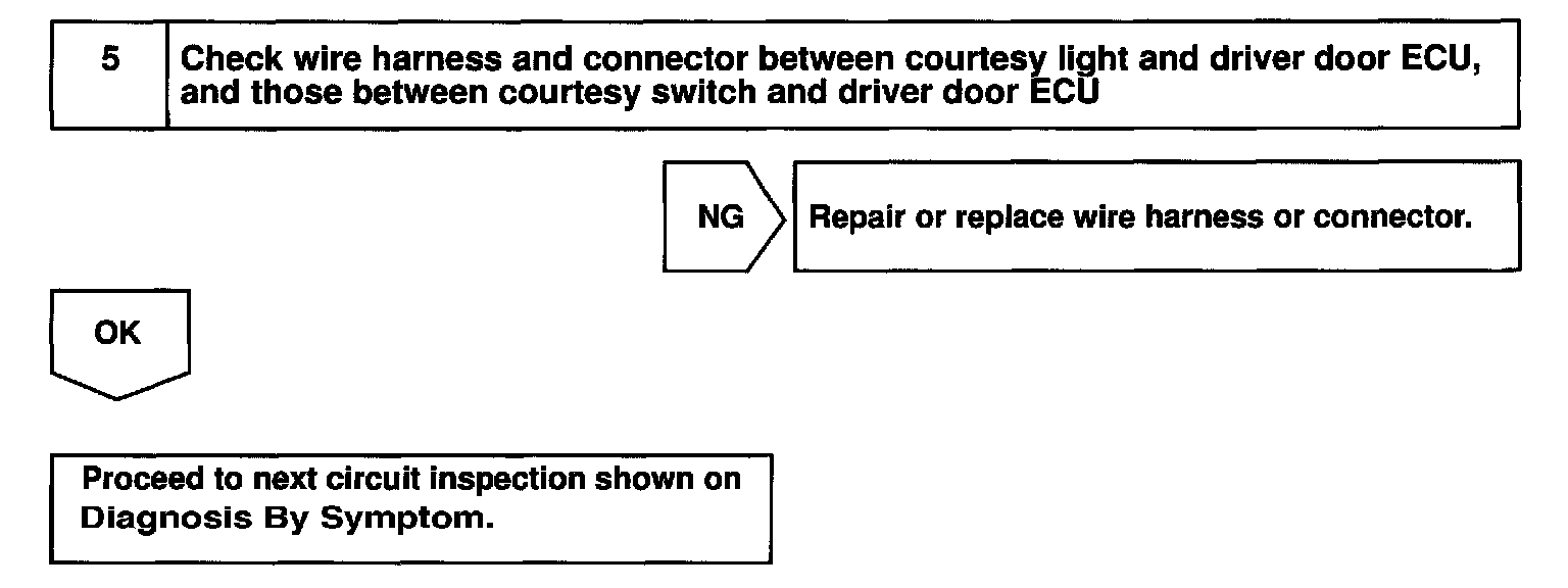 The driver door ECU detects the condition of the door courtesy switch and sends a signal to each ECU via the multiplex communication circuit.