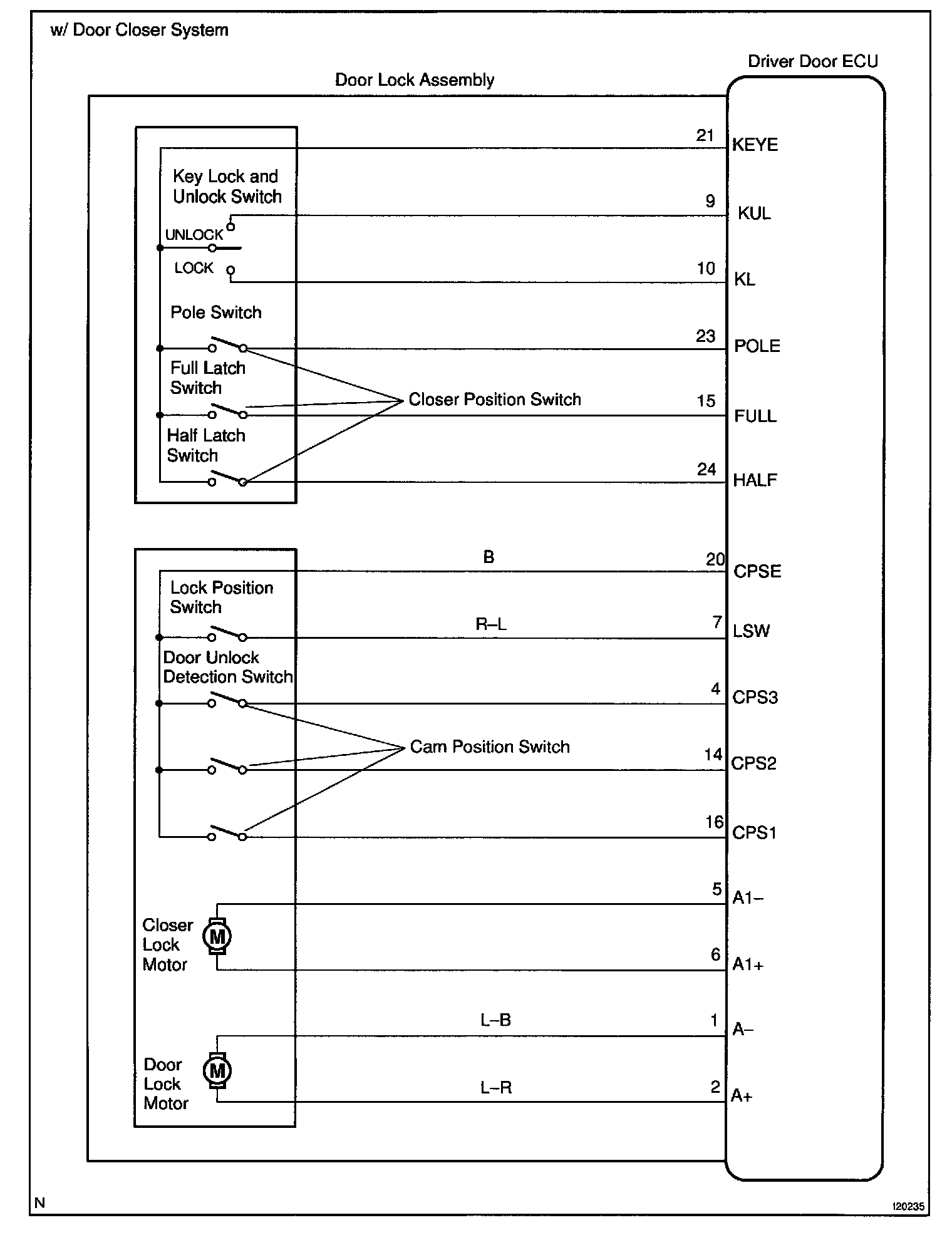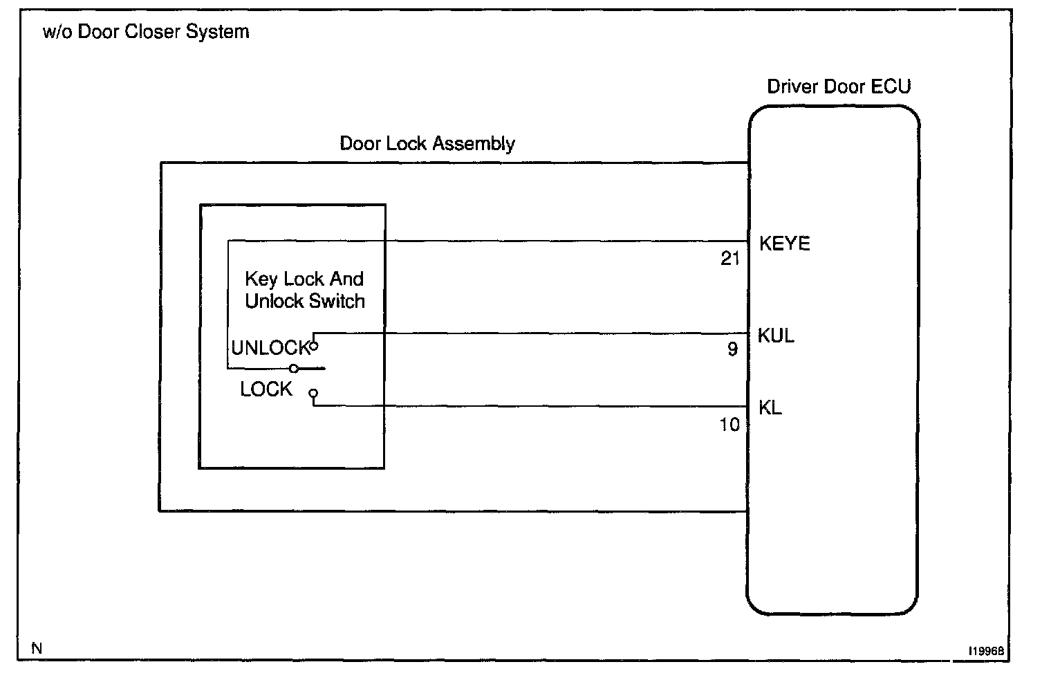 When the key is turned to the lock side, terminal KL of the switch is grounded and when the key is turned to the unlock side, terminal KUL of the switch is grounded.