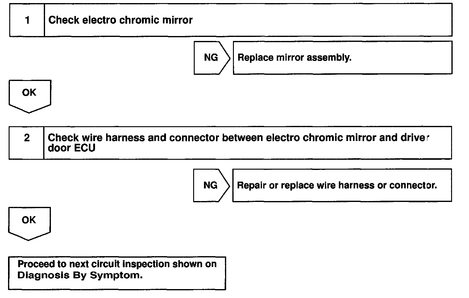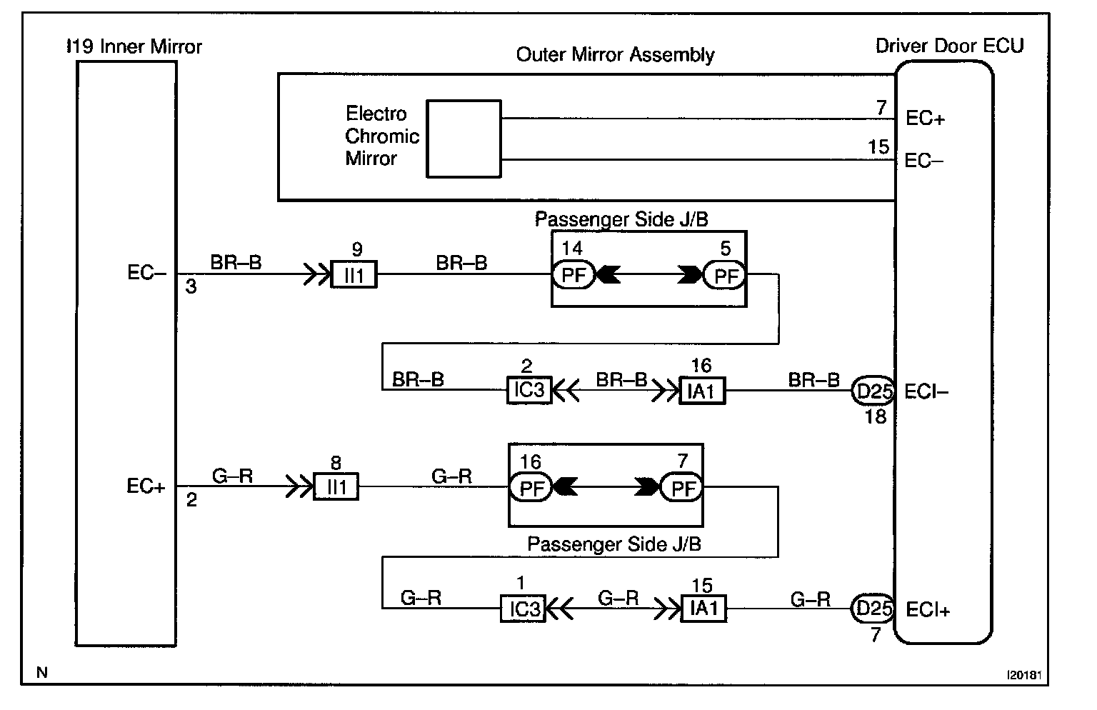 CIRCUIT DESCRIPTIONThe electro chromic mirror is built in the outer mirror assembly.