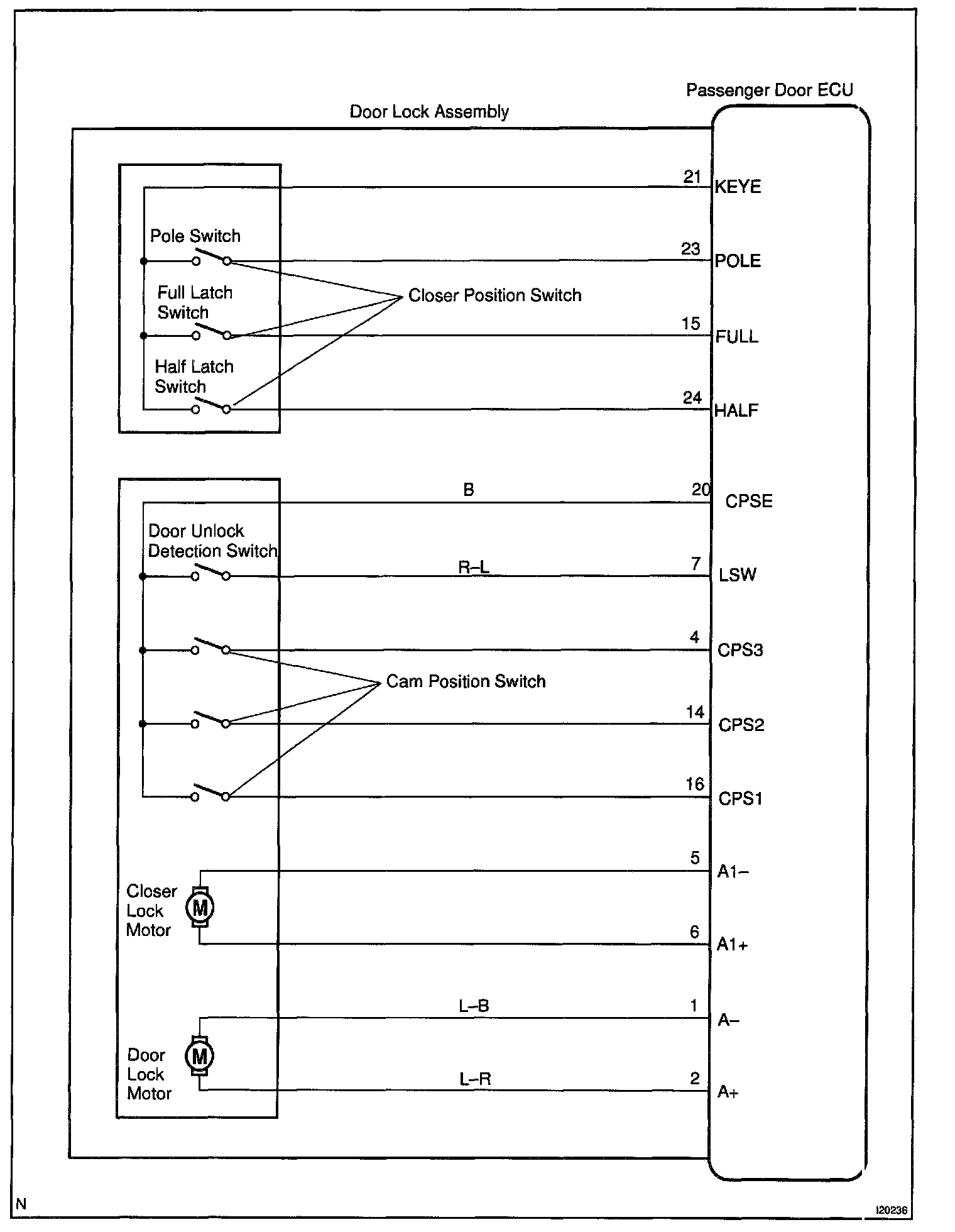 CIRCUIT DESCRIPTIONThe closer position switch is built in the door lock assembly and detects the position of the closer.