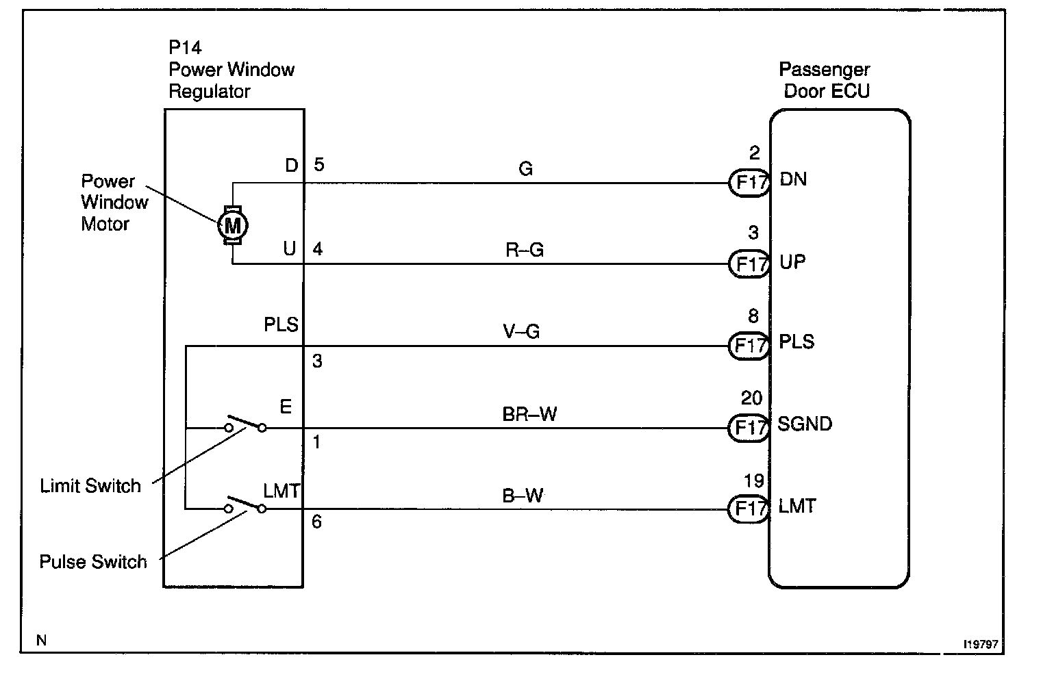CIRCUIT DESCRIPTIONThe passenger door ECU receives the passenger door power window switch signal from the master switch to operate the power window motor.