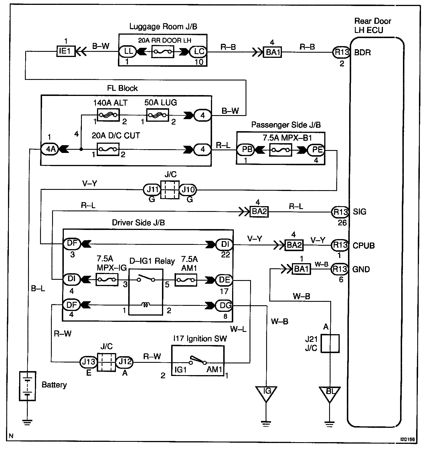 This circuit supplies power to operate the rear door LH ECU.