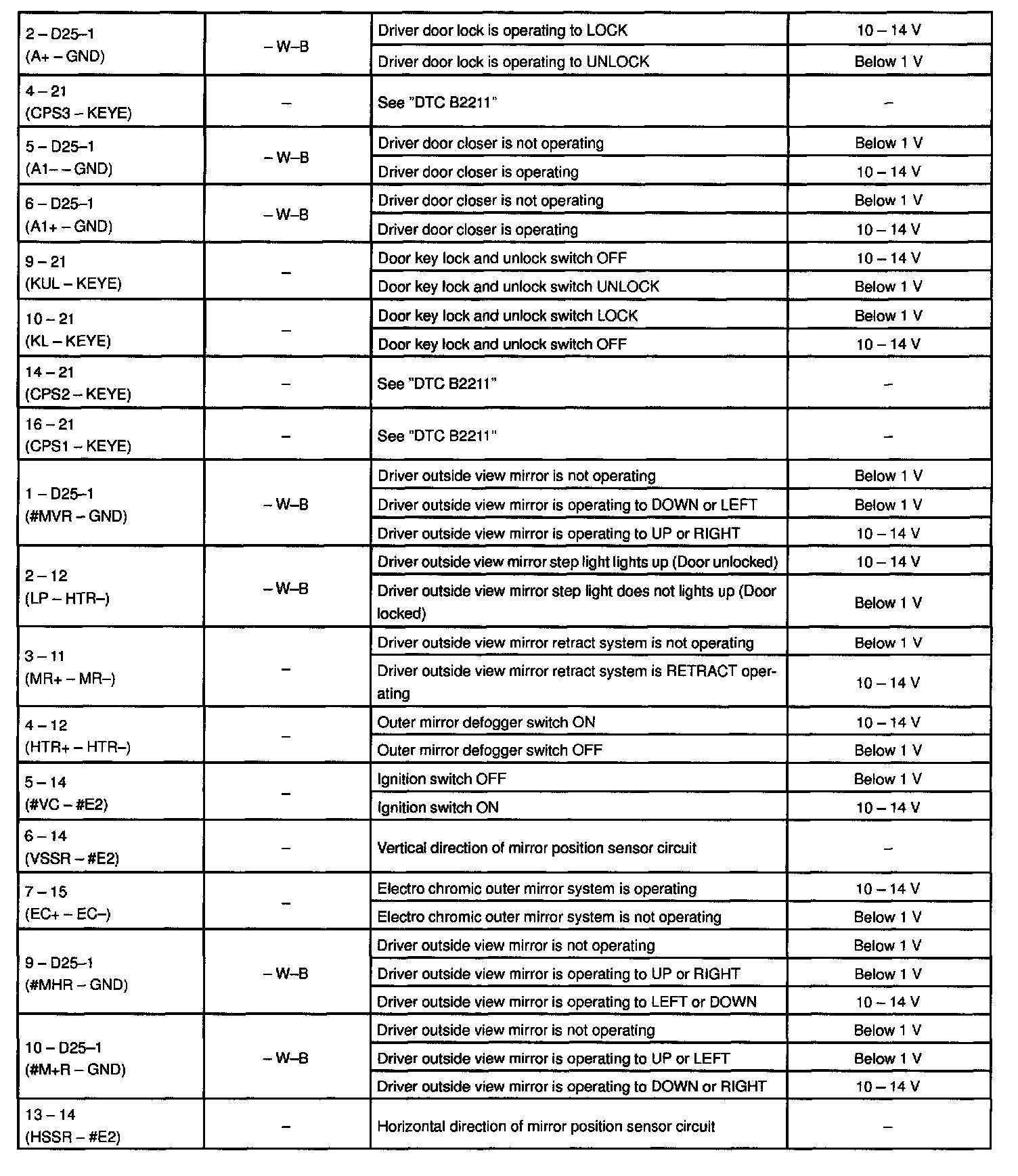 Pinout Values and Diagnostic Parameters