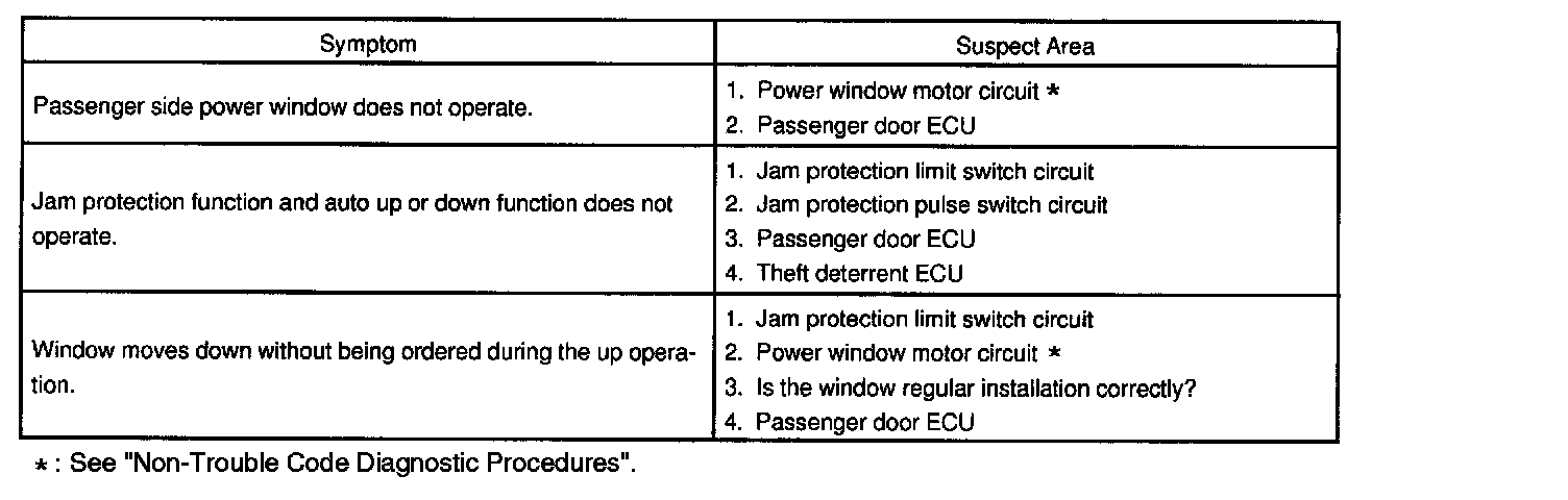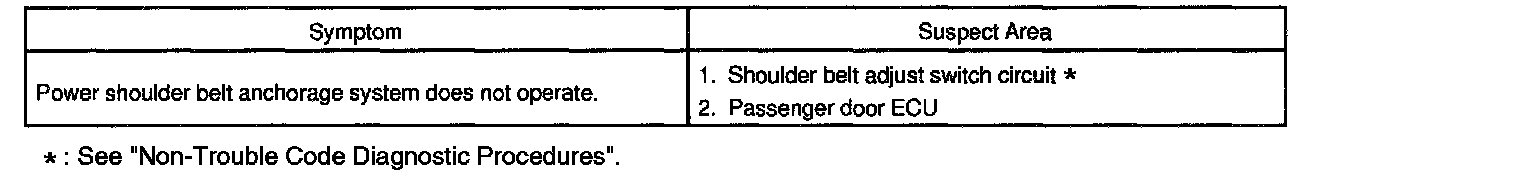 Problem Symptoms Table - Power Shoulder Belt Anchorage System: