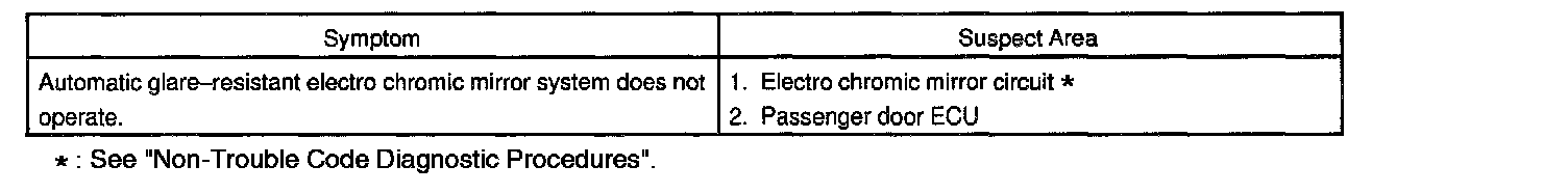 Problem Symptoms Table - Automatic Glare-Resistant Electro Chromic Mirror System:
