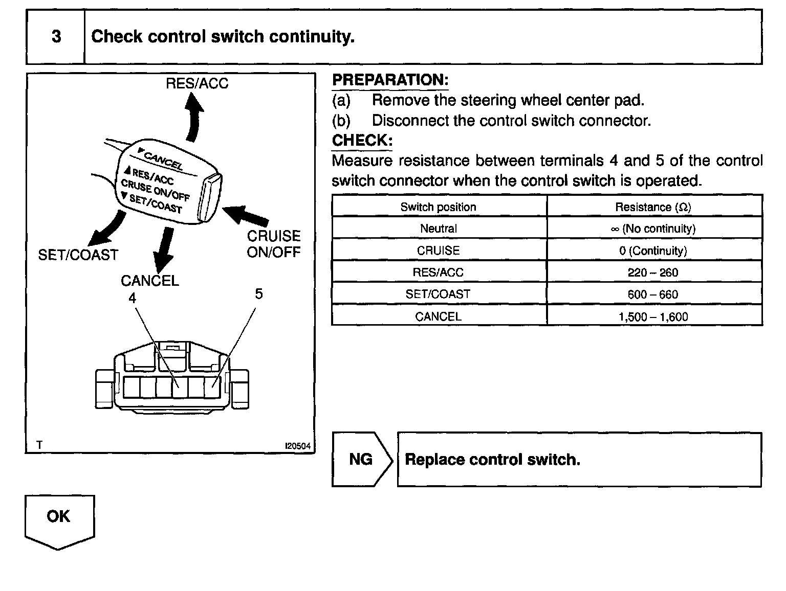 CIRCUIT DESCRIPTIONThis circuit carries the SET/COAST, RESUME/ACCEL and CANCEL voltage signals to the ECU.
