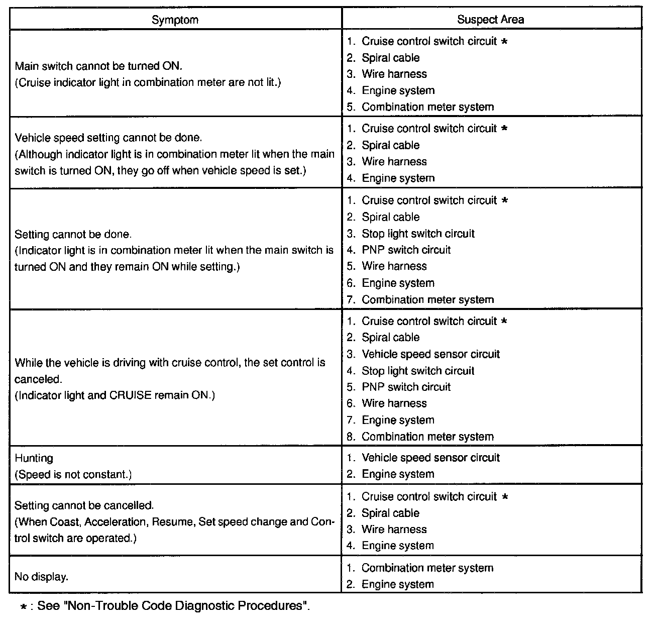 Problem Symptoms Table - W/o Adaptive Laser Cruise Control System:
