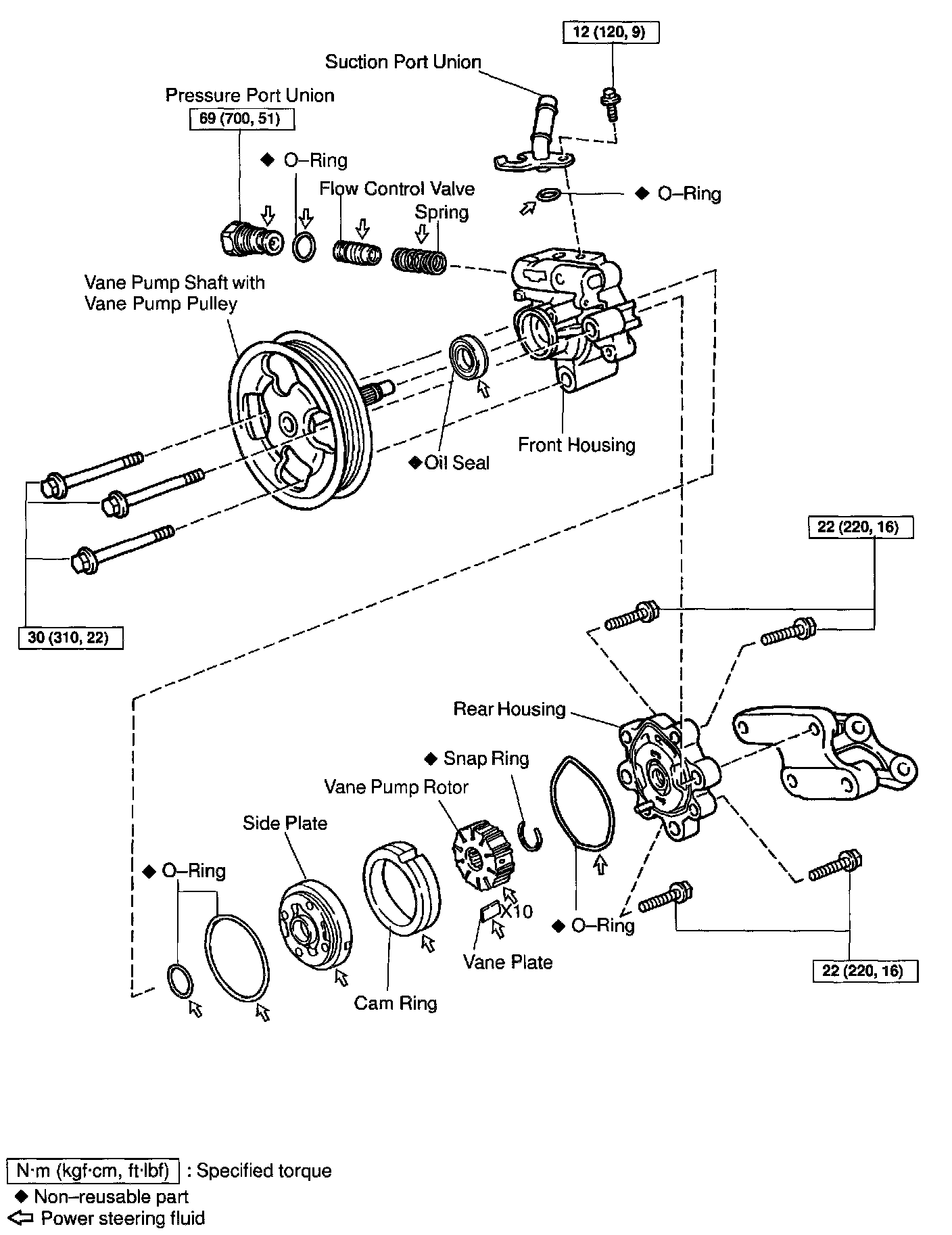 POWER STEERING VANE PUMP REPLACEMENT AND OVERHAUL W/ RELATED COMPONENTS