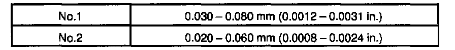 Standard oil clearance: 0.005 - 0.011 mm (0.0002 - 0.0004 inch)