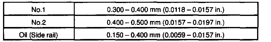 If the end gap is greater than maximum, replace the piston ring. If the end gap is greater than maximum, even with a new piston ring, replace the cylinder block.