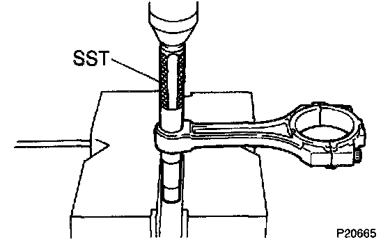 e. Check the piston pin fit at normal room temperature. Coat the piston pin with engine oil, and push it into the connecting rod with your thumb.