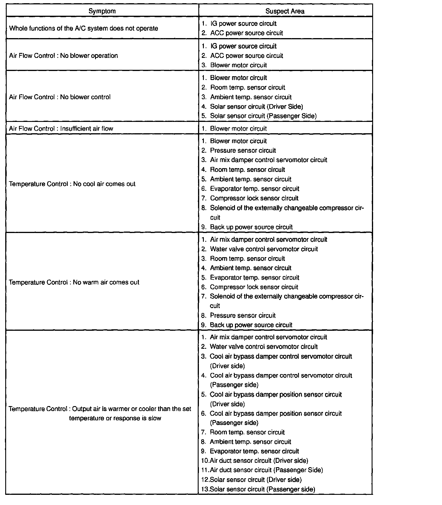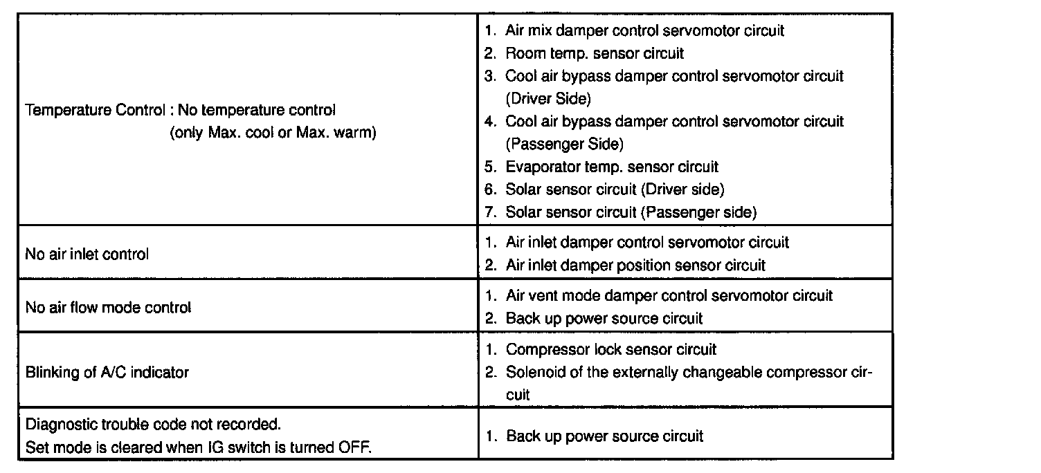 Problem Symptoms Table - Air Conditioning System: