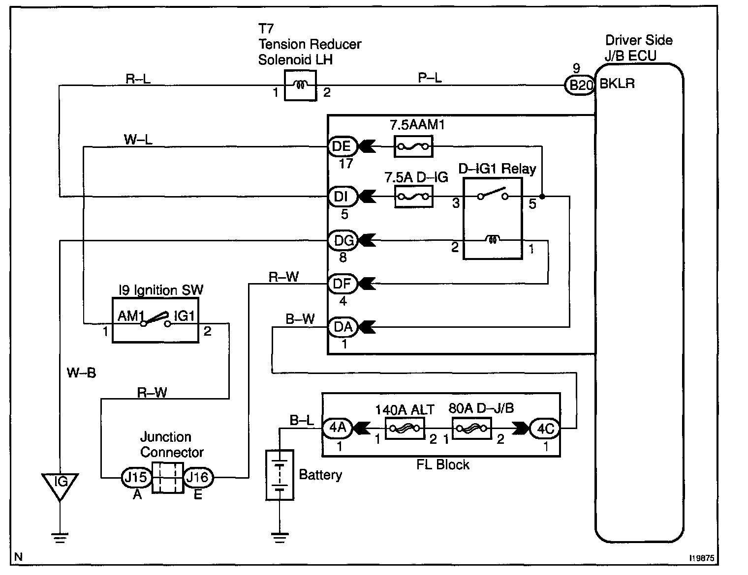 The Driver side J/B ECU receives the seat belt buckle switch signal to operate the tension reducer solenoid.