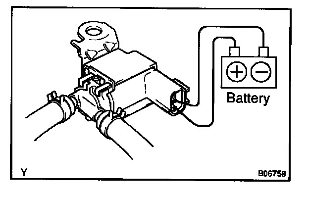 2. Connect the positive (+) and negative (-) leads from the battery to the VSV terminals for the EVAP.