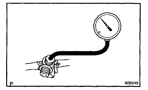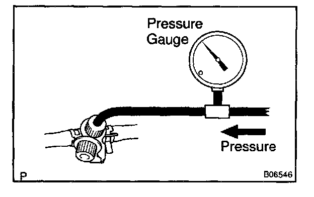 a. Disconnect the EVAP line hose from the charcoal canister side (See step 8. and then pressurize and make the internal pressure in the fuel tank 4 kPa (41 gf/Sq. cm, 0.58 psi).