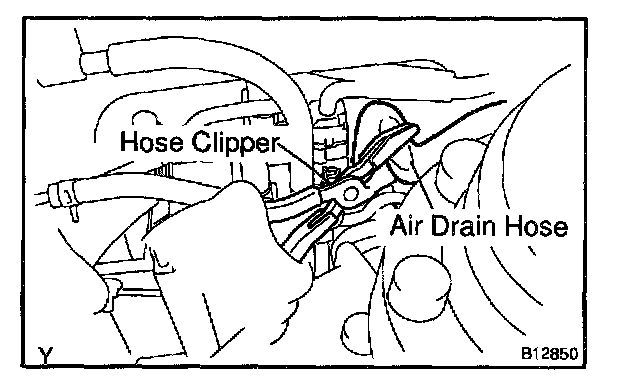 1. Close off the air drain hose at the marked position of the canister with a hose clipper or similar instrument.