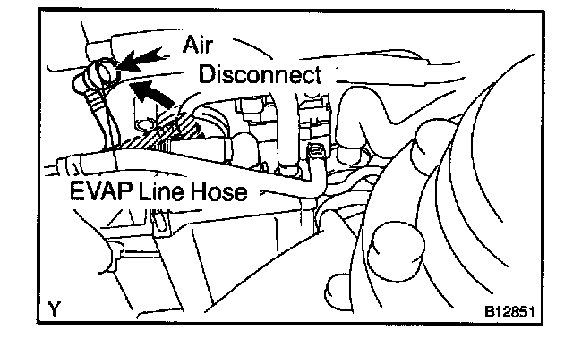 4. Disconnect the vent line hose from the charcoal canister.