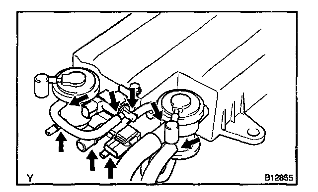 HINT: If the vacuum does not change, you can conclude that the hose connecting the VSV to the service port has come loose or is blocked, or the VSV is malfunctioning.