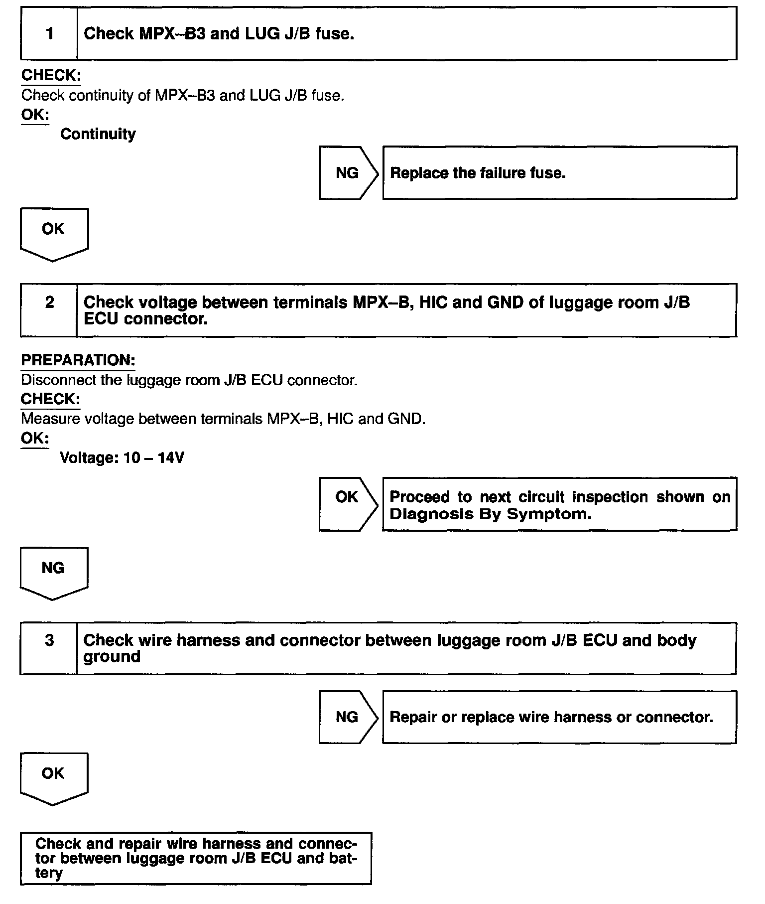 This circuit provides power to operate the luggage room J/B ECU.