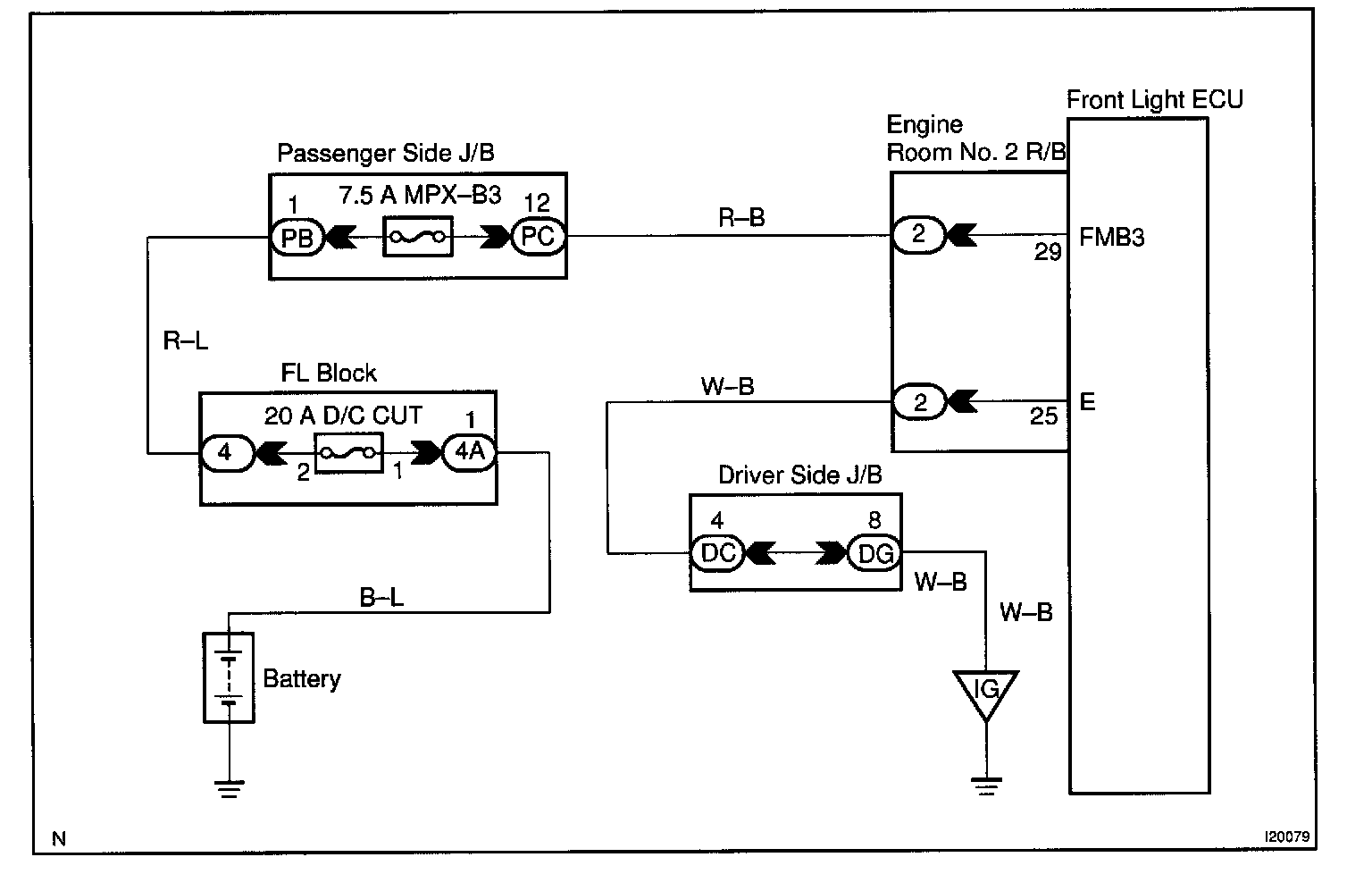 This circuit provides power to operate the front light ECU.