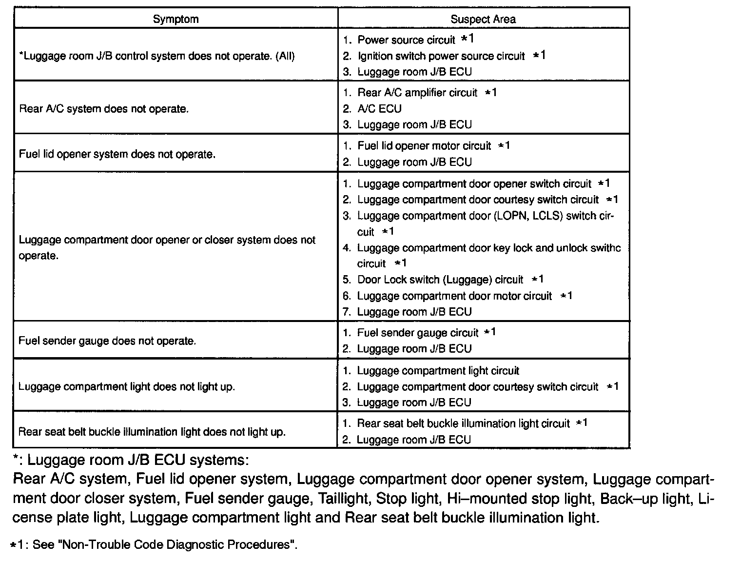 Problem Symptoms Table: