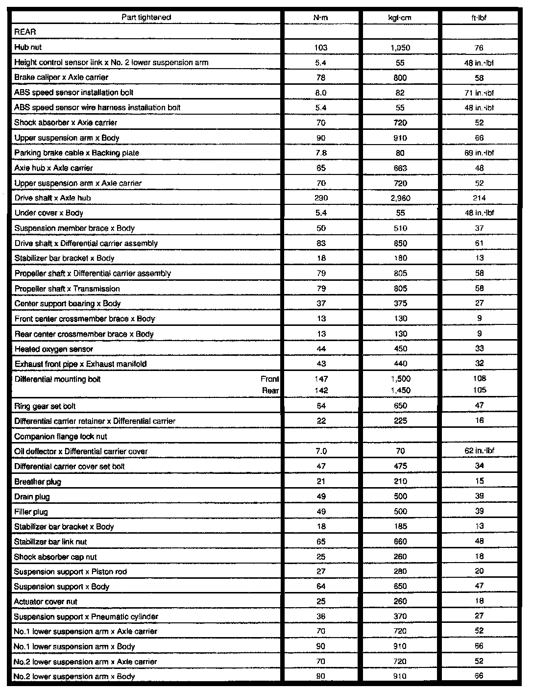 Differential Torque Data