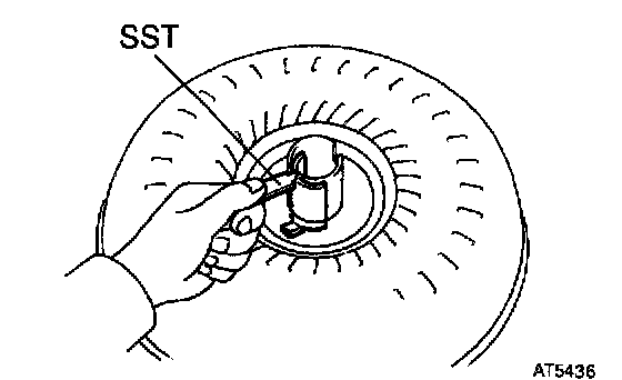 a. Install SST so that it fits in the notch of the converter hub and outer race of the one-way clutch.