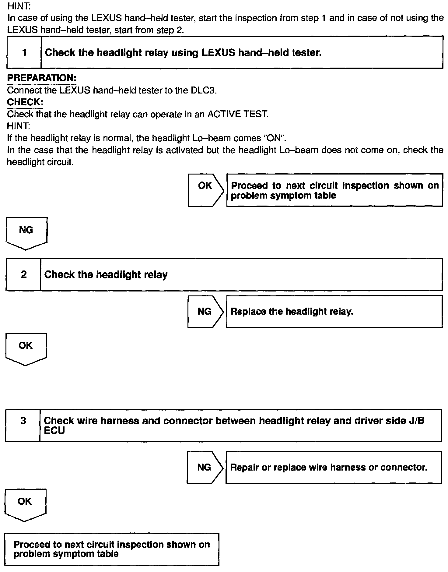 In this condition, if any of the following operations is done, the ECU turns the headlight relay off to stop the headlight flashing: