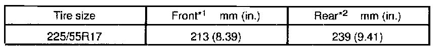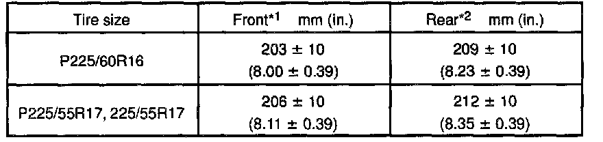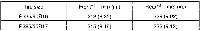 When the radius of a wheel is 315 mm (12.40 inch) or 318 mm (12.52 inch) vehicle height will be the value described in the chart.