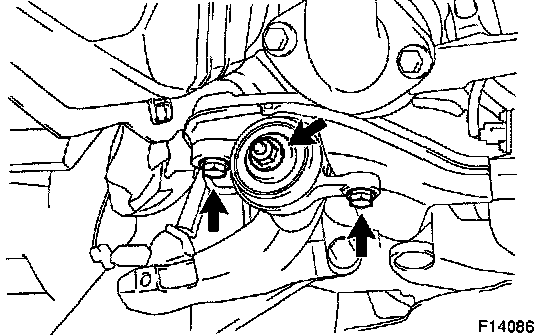 b. Remove the nut and washer from the rear of the lower No. 2 bushing.