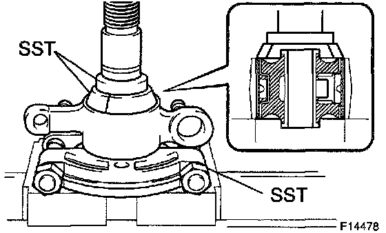 e. Using SST and a press, reinstall a bushing as shown in the illustration.