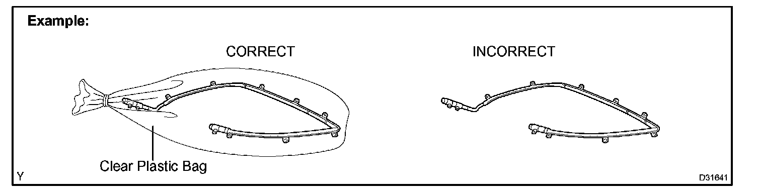 1. Always place the removed or new curtain shield airbag assembly in a clear plastic bag, and keep it in a safe place.