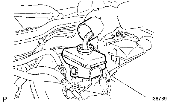 NOTICE: Make sure that brake fluid in the master cylinder reservoir tank does not become empty.