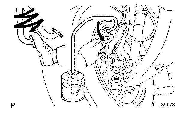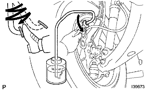 1. Connect the vinyl tube to the bleeder plug at the right front wheel or the right rear wheel and loosen the bleeder plug.
