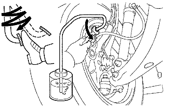 ^ During this procedure, the pedal seems heavy, but completely depress it so that the brake fluid comes out from the bleeder plug.