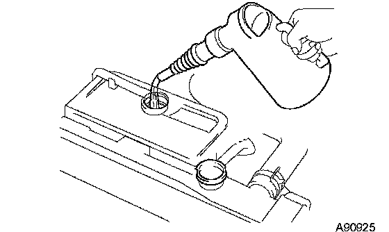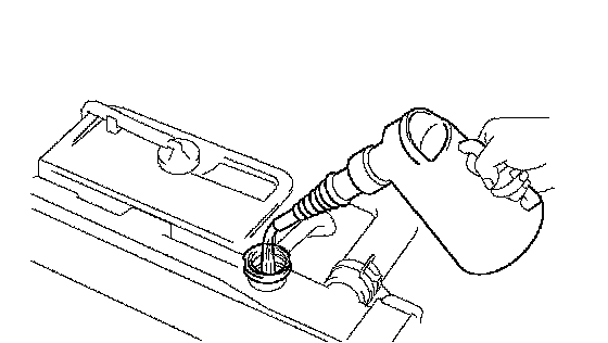 b. Slowly pour coolant into the radiator reservoir until it reaches the FULL line.