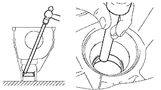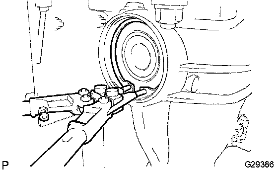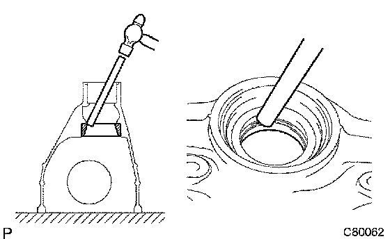 b. Using a brass bar and a hammer, remove the rear bearing outer race.