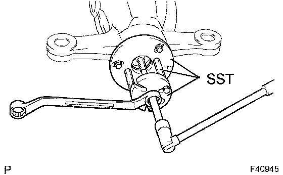 NOTICE: Apply hypoid gear oil to the SST center bolt tip and threads before use.