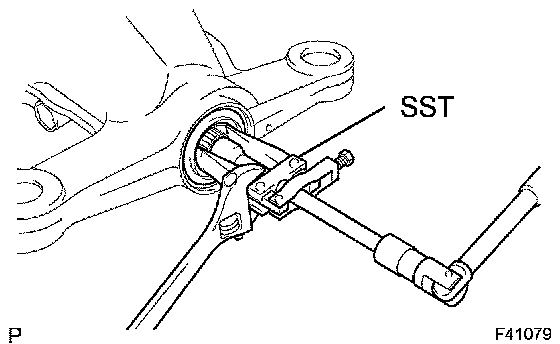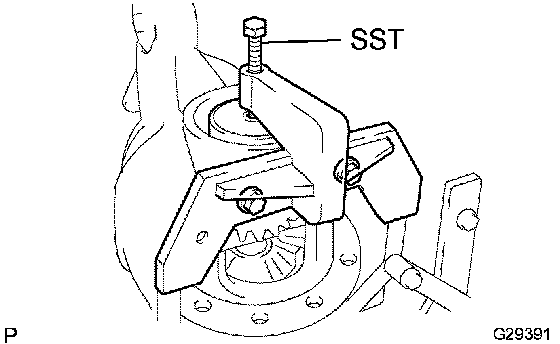 ^ Hook the claws of the SST to the bearing inner race from the differential case.