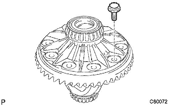 e. Tighten the new 2 bolts temporarily so that the bolt holes in the ring gear and differential case are not misaligned.
